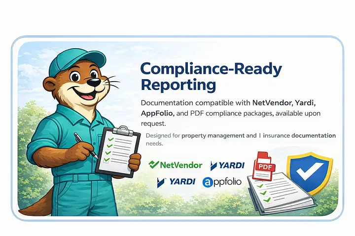 PDF Compliance Packages available, and reporting compatible with NetVendor, Yardi, and Appfolio